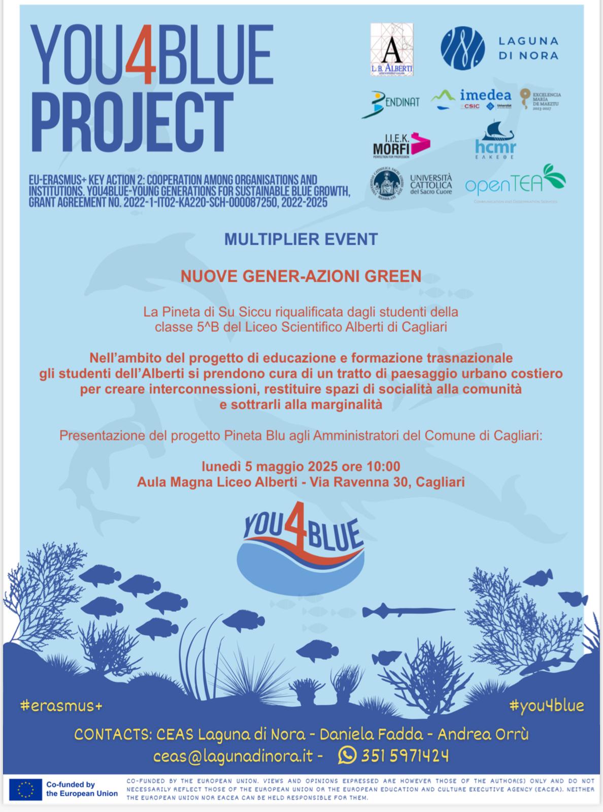 Dopo i saluti del preside dell'istituto Roberto Bernardini e l'intervento della referente scolastica del Progetto Erasmus + YOU4BLUE Maria Assunta Melis, saranno i ragazzi a illustrare nel dettaglio il progetto: un nuovo esempio di impegno e partecipazione attiva per la crescita della città.