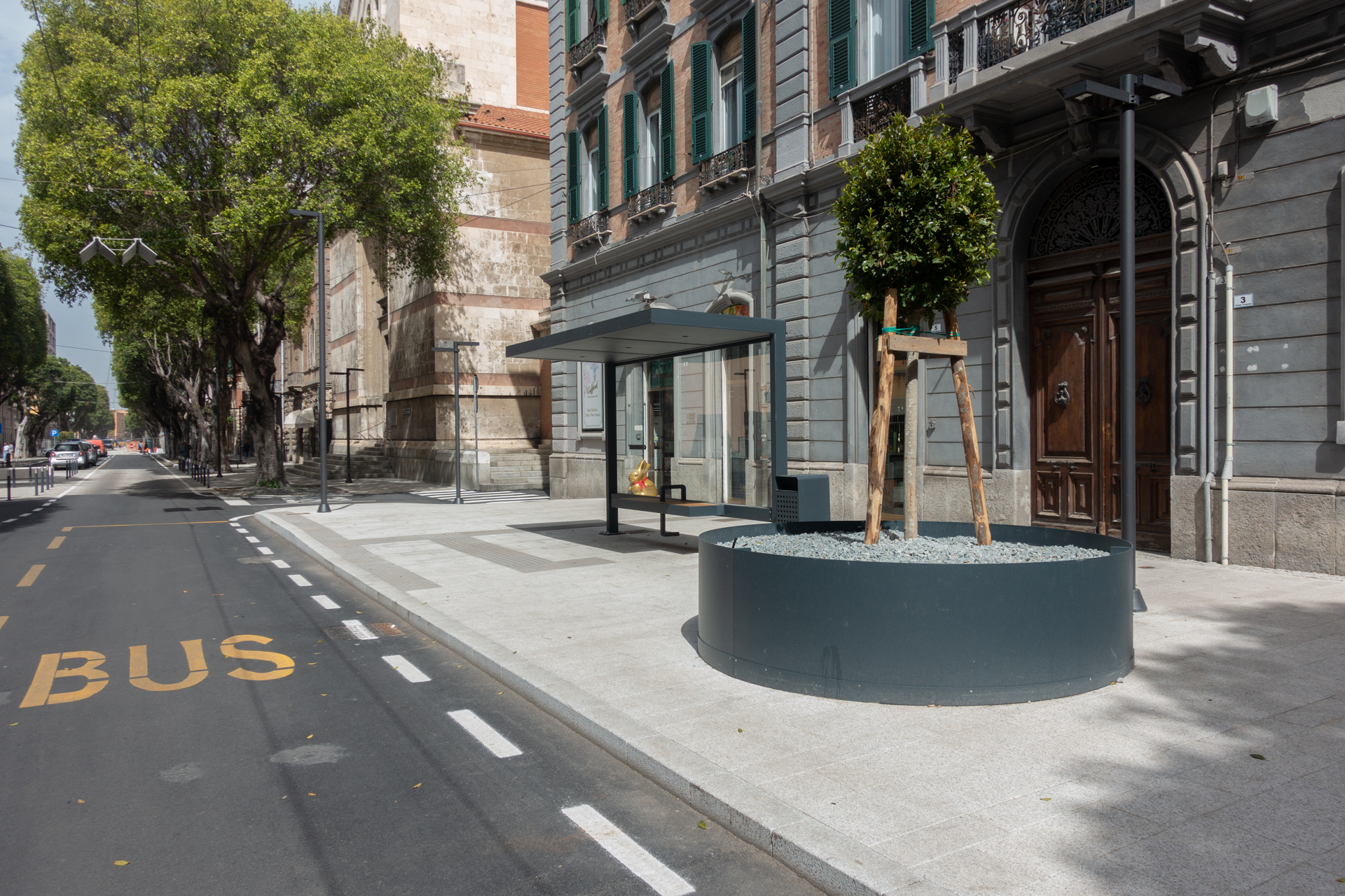 Dal punto di vista della fruibilità, la riqualificazione di una delle vie più importanti di Cagliari prevede la posa di nuove pavimentazioni compatibili con le caratteristiche paesaggistiche del luogo e la loro integrazione con gli spazi verdi per aumentarne la vivibilità.